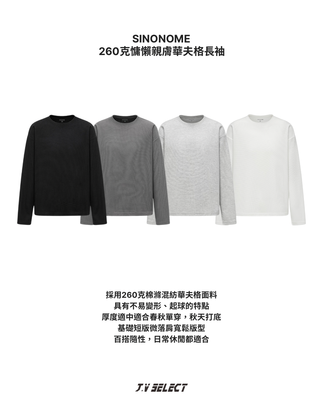 SINONOME 260克慵懶親膚華夫格長袖